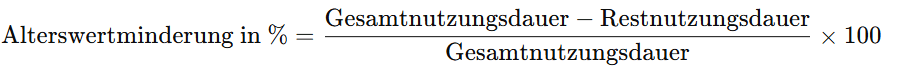 Die Berechnung der Alterswertminderung stützt sich auf gesetzliche Vorgaben, insbesondere auf § 38 der ImmoWertV (Immobilienwertermittlungsverordnung). Hier wird der Alterswertminderungsfaktor als Verhältnis der Restnutzungsdauer zur Gesamtnutzungsdauer definiert.